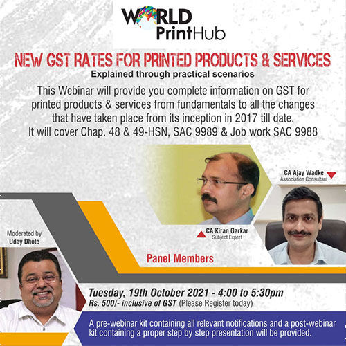 Are you keen on having a complete information on GST for Printed Products and Services ?? Know about it in detail with practical scenarios! Click here to make the payment for this exclusive webinar now.